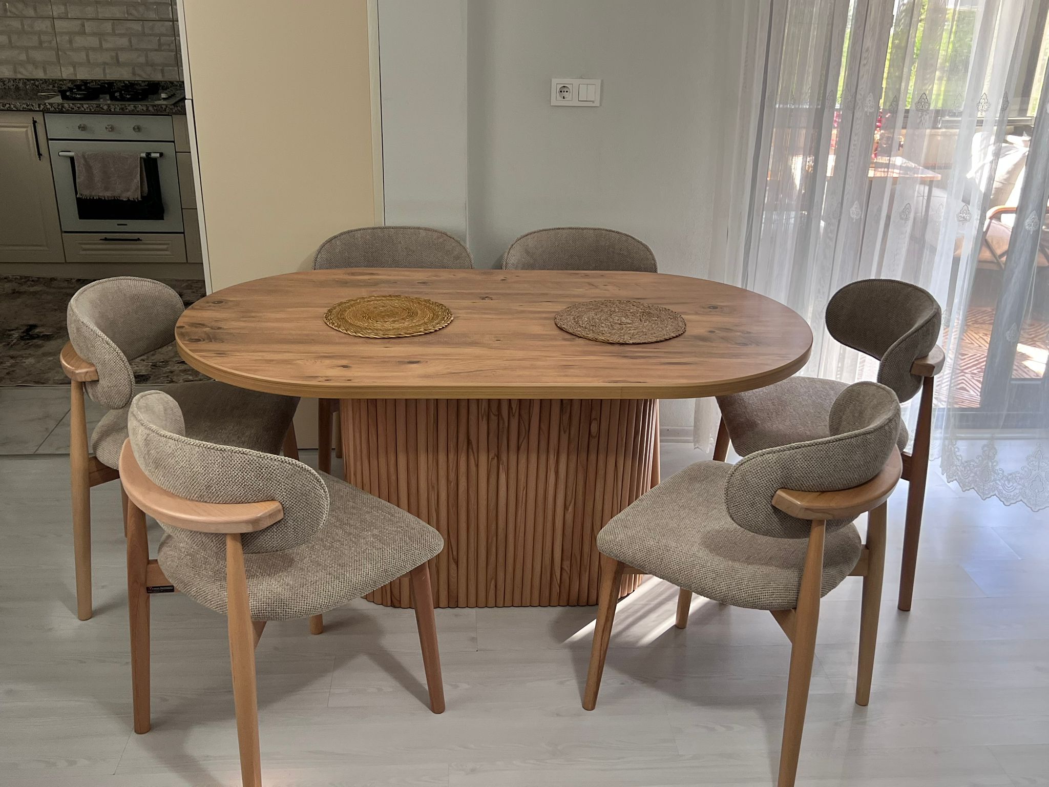 - Tasarım BY VARAN'a ait olan 6 kişilik yemek masası takımı renk özellikleri ile evinizi süslemek için hazır.