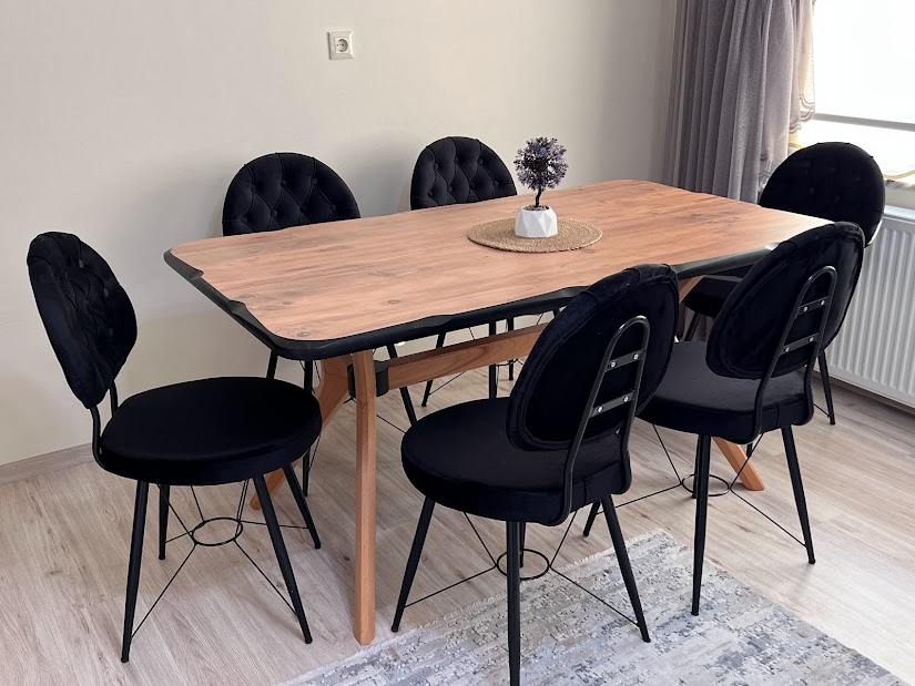 - Tasarımı BY VARAN ait olan 6 kişilik yemek masası takımı renk varyantları ile evinizi süslemek için hazır.