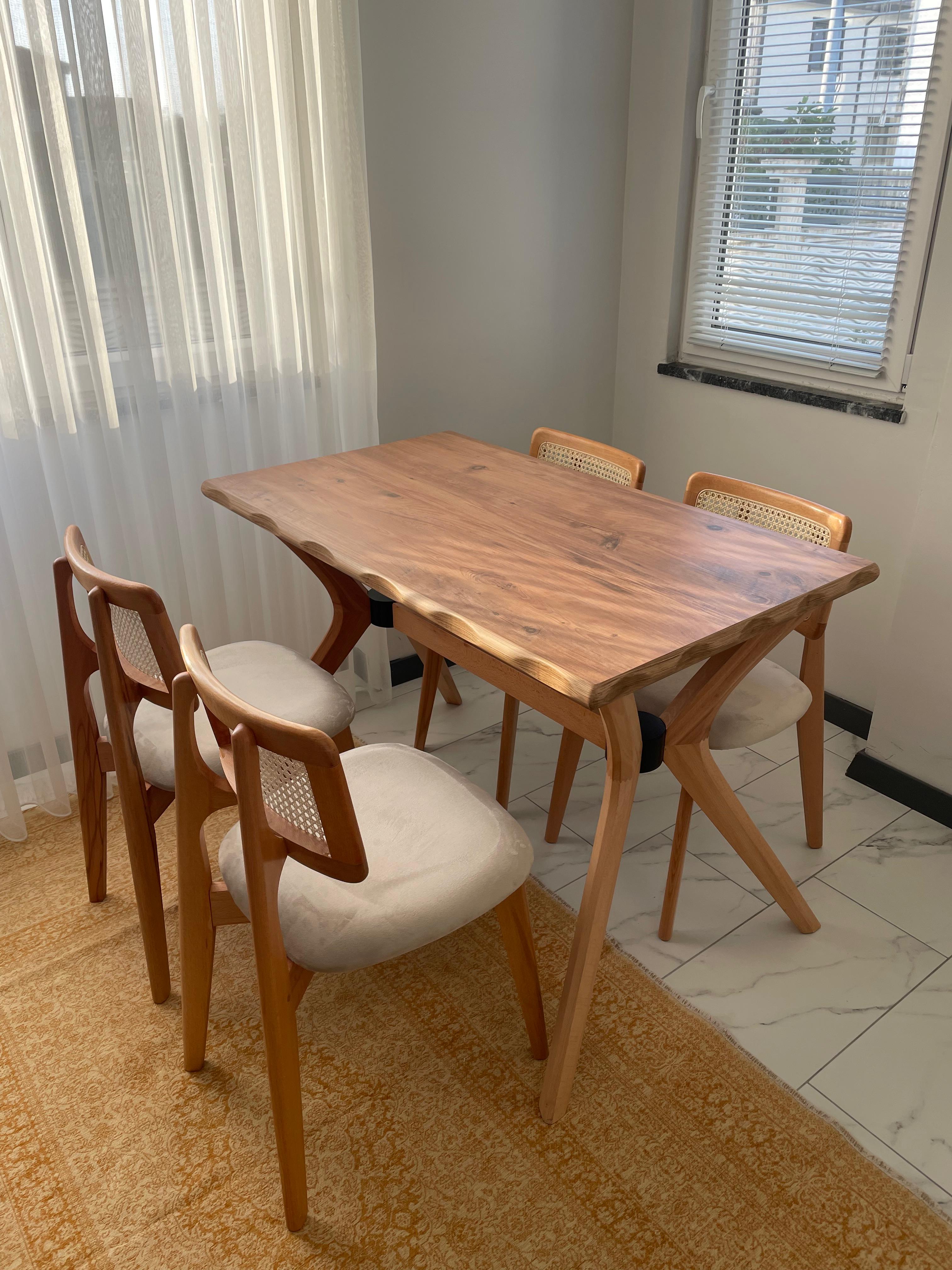 - Tasarım BY VARAN'a ait olan 4 kişilik yemek masası takımı renk özellikleri ile evinizi süslemek için hazır.