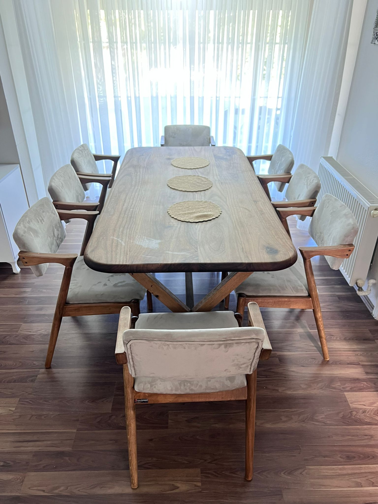 - Tasarım BY VARAN'a ait olan 8 kişilik yemek masası takımı renk özellikleri ile evinizi süslemek için hazır.