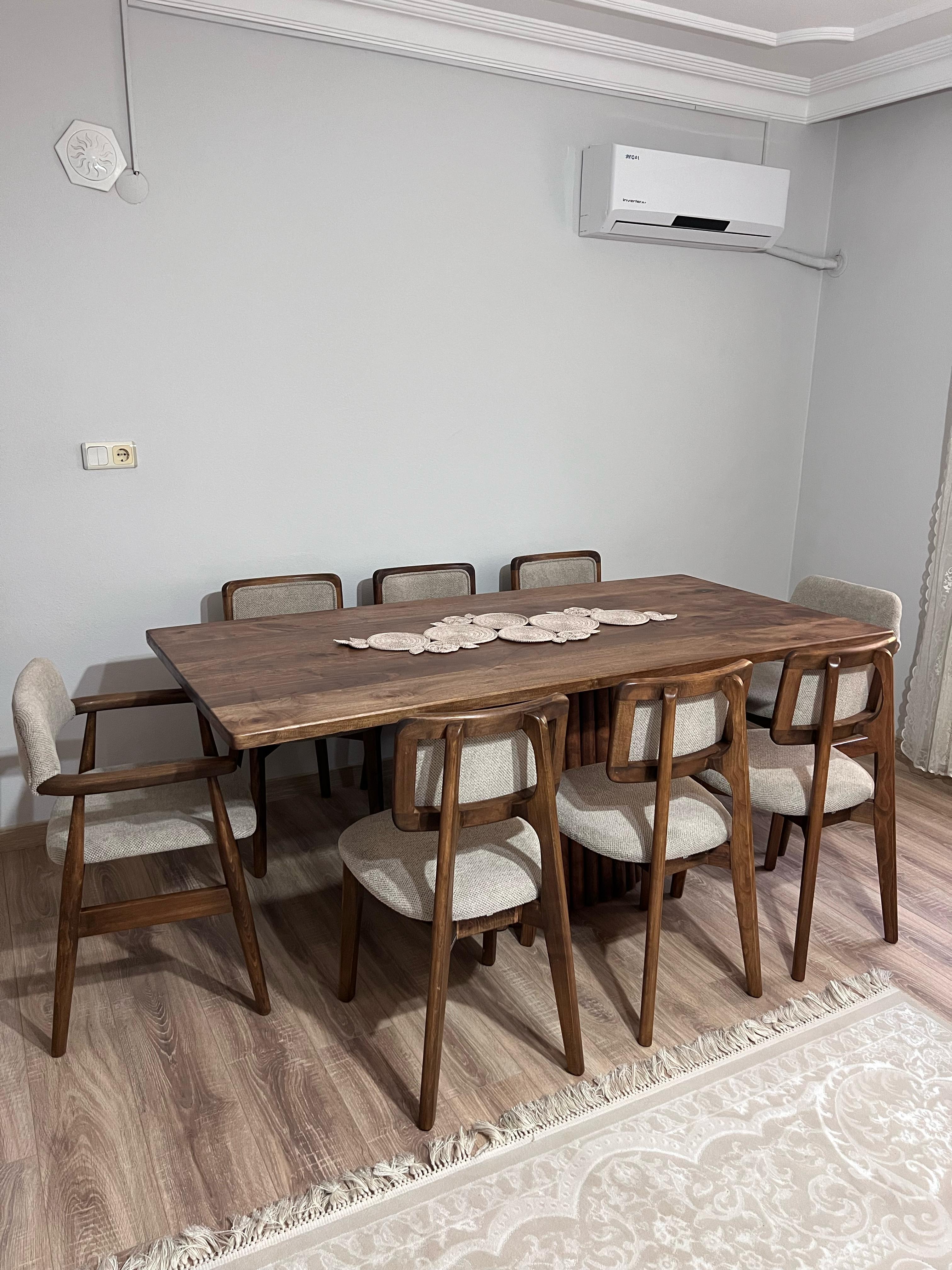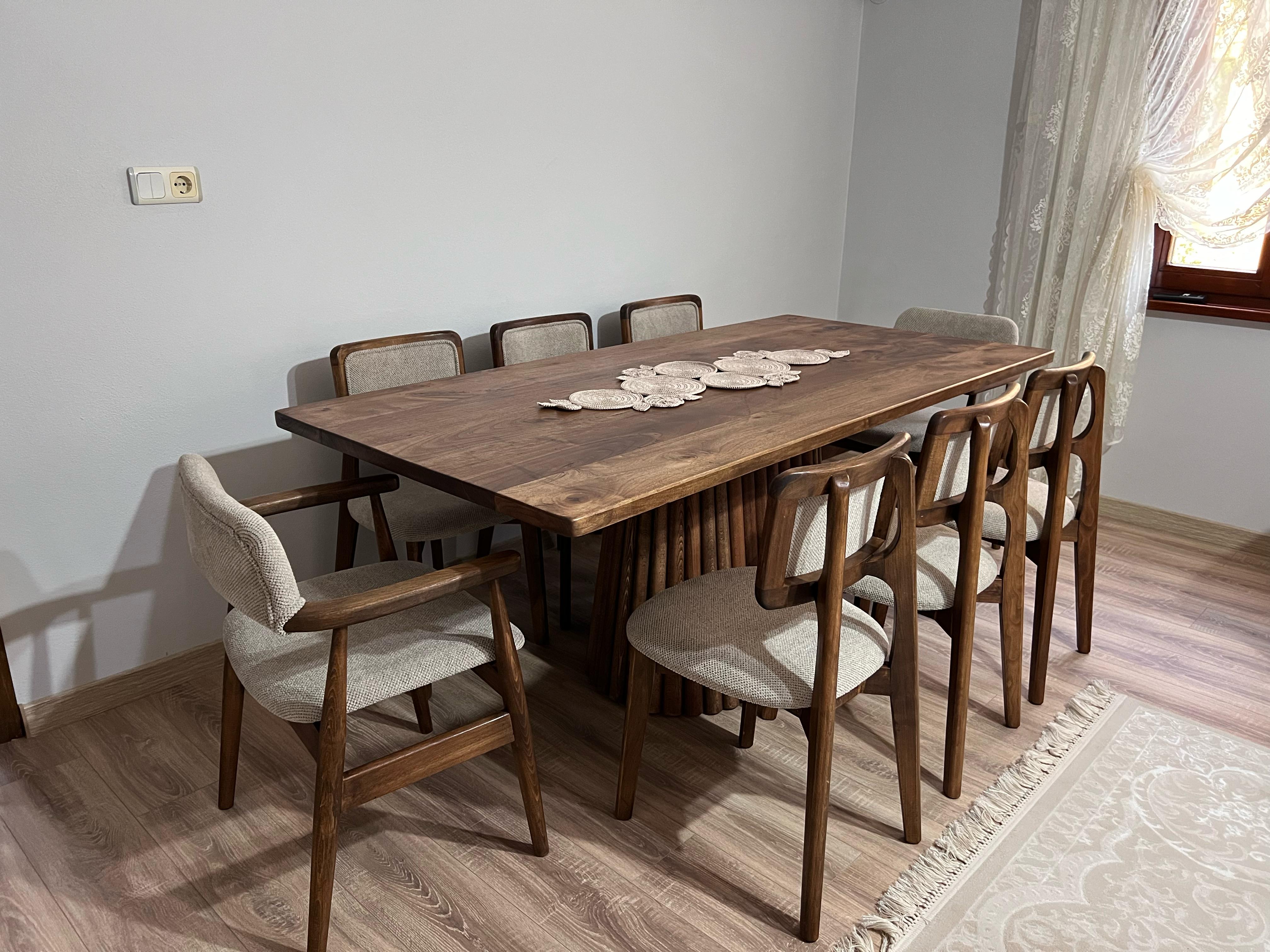 - Tasarım BY VARAN'a ait olan 6 kişilik yemek masası takımı renk özellikleri ile evinizi süslemek için hazır.
