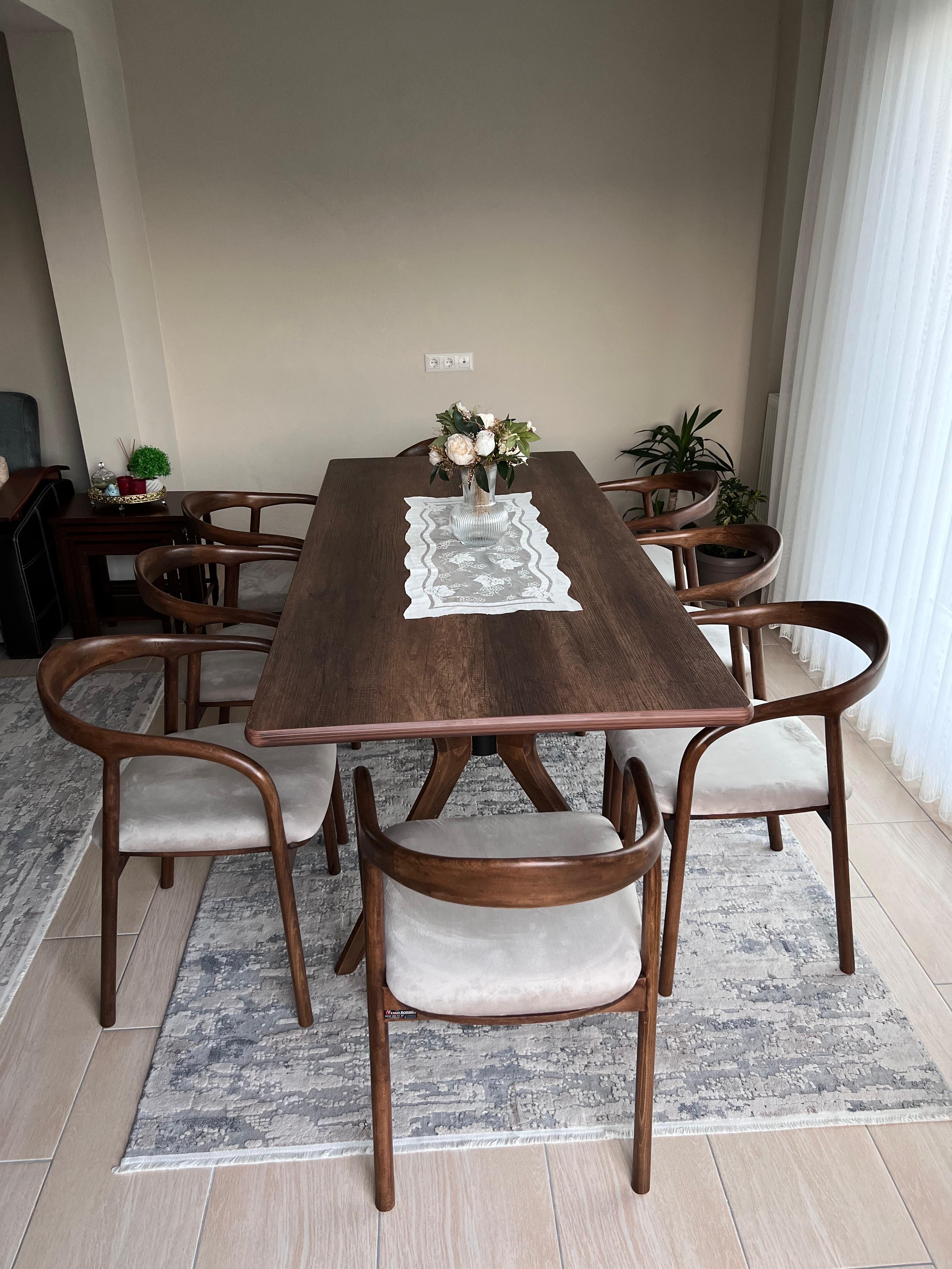 - Tasarım BY VARAN'a ait olan 8 kişilik yemek masası takımı renk özellikleri ile evinizi süslemek için hazır.