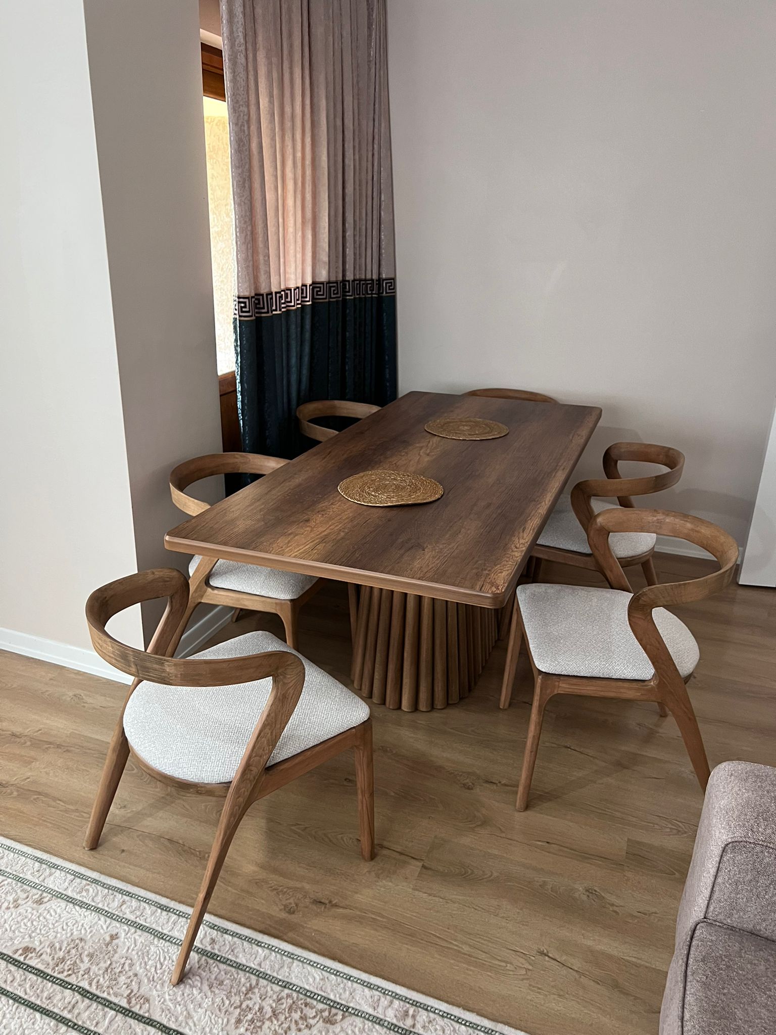 - Tasarım BY VARAN'a ait olan 6 kişilik yemek masası takımı renk özellikleri ile evinizi süslemek için hazır.
