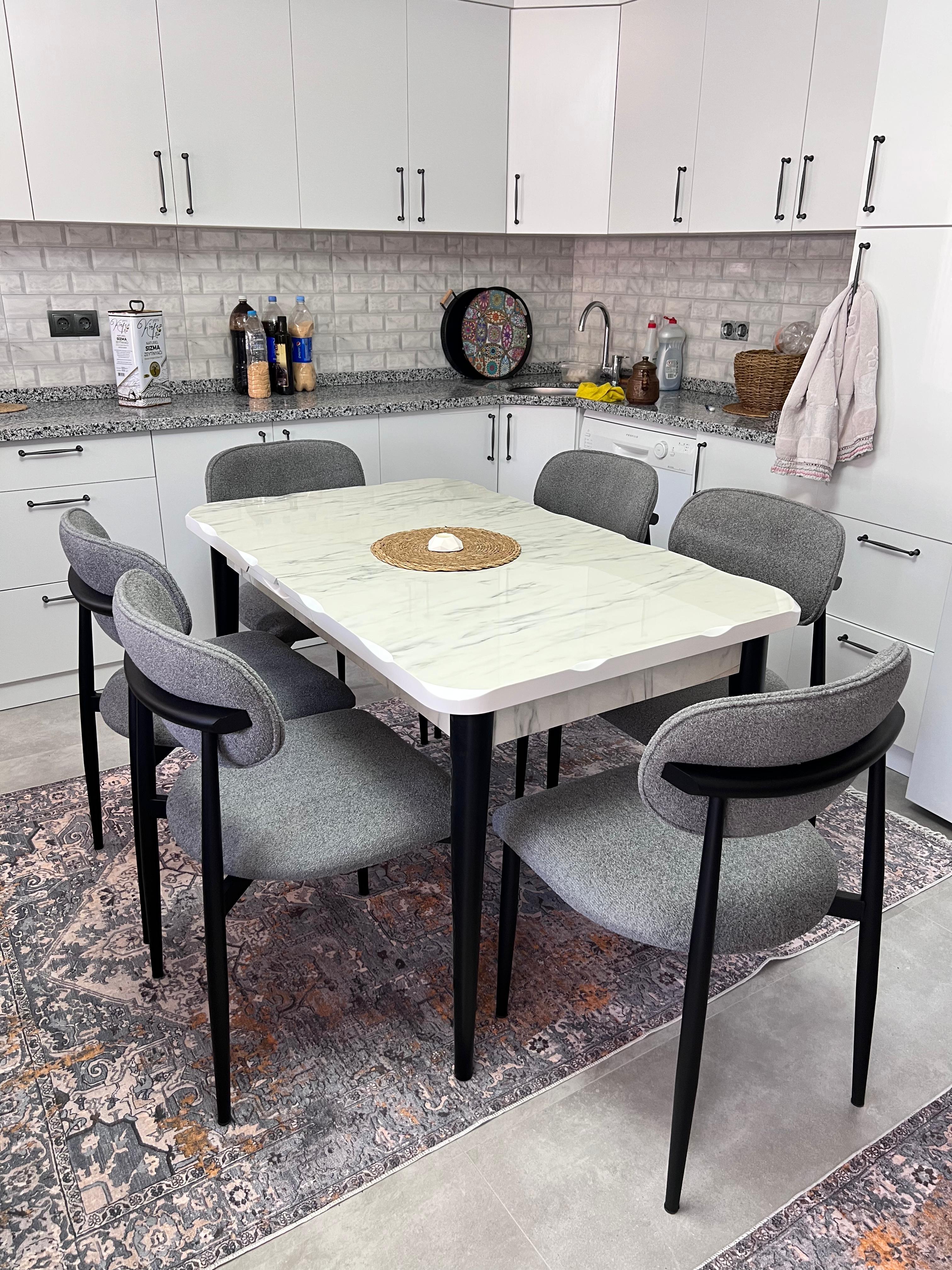 - Tasarım BY VARAN'a ait olan 6 kişilik yemek masası takımı renk özellikleri ile evinizi süslemek için hazır.