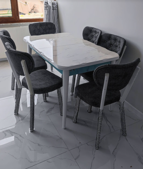 - Tasarımı BY VARAN ait olan 6 kişilik yemek masası takımı renk varyantları ile evinizi süslemek için hazır.