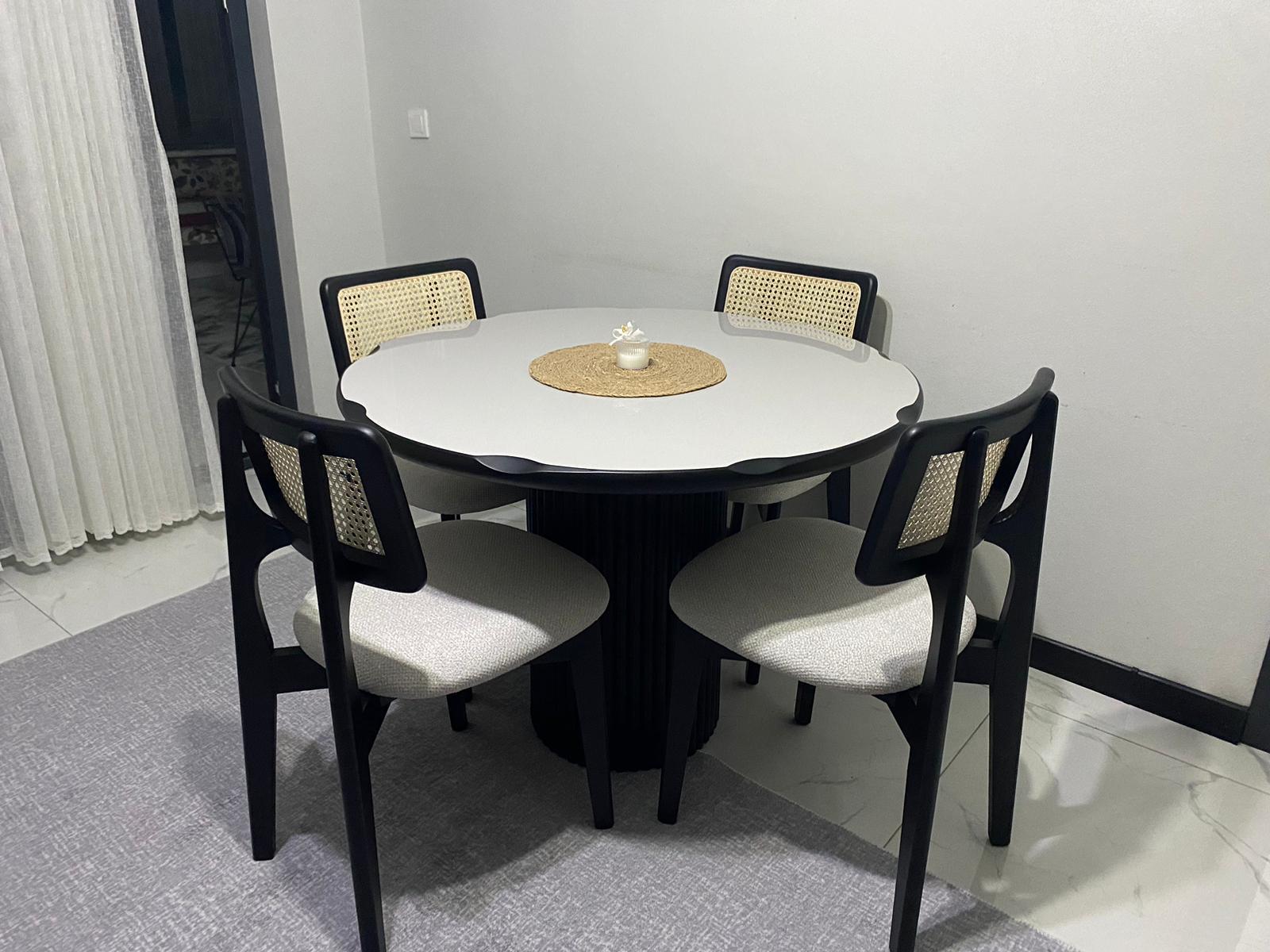 - Tasarım BY VARAN'a ait olan 4 kişilik yemek masası takımı renk özellikleri ile evinizi süslemek için hazır.