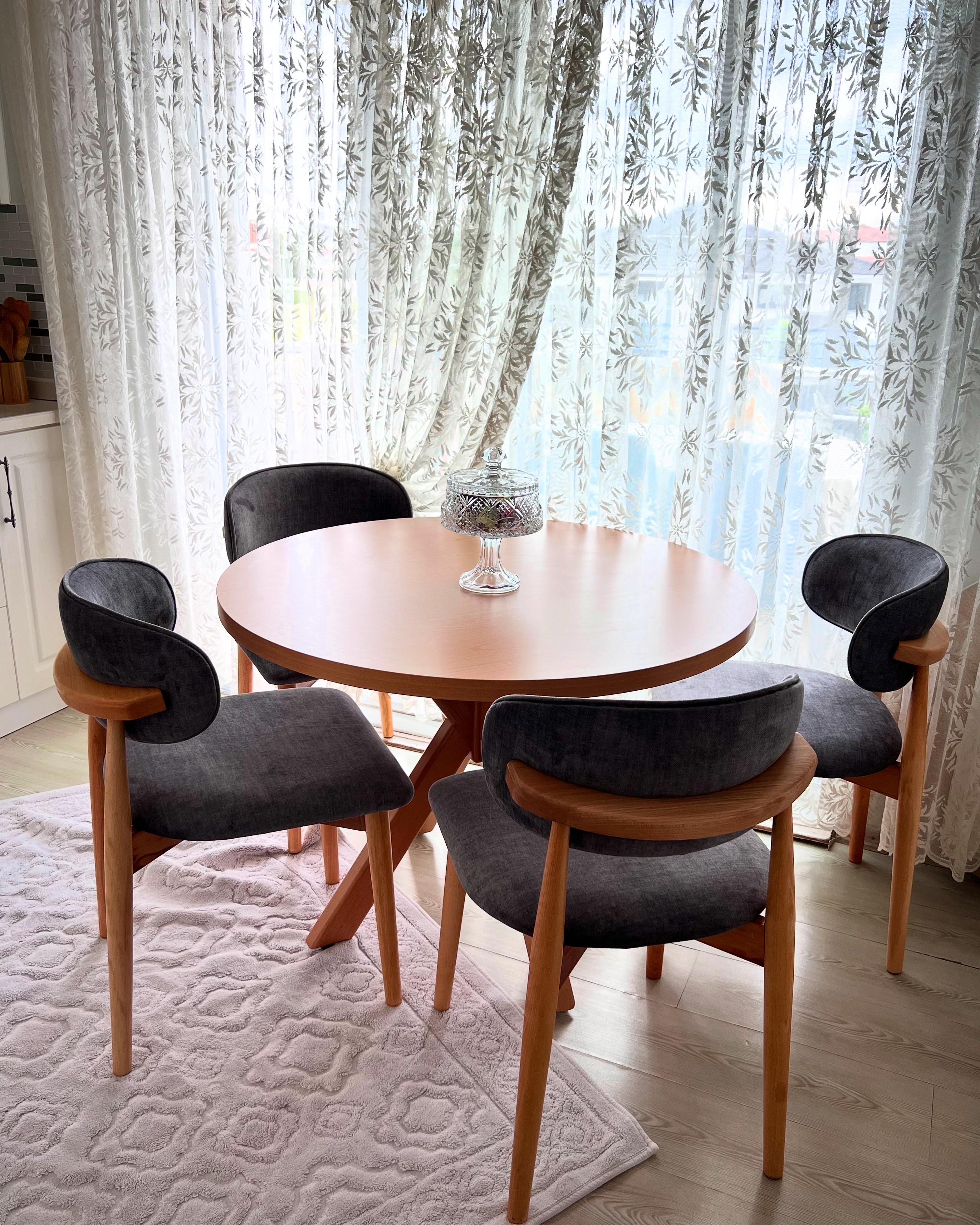 - Tasarım BY VARAN'a ait olan 4 kişilik yemek masası takımı renk özellikleri ile evinizi süslemek için hazır.
