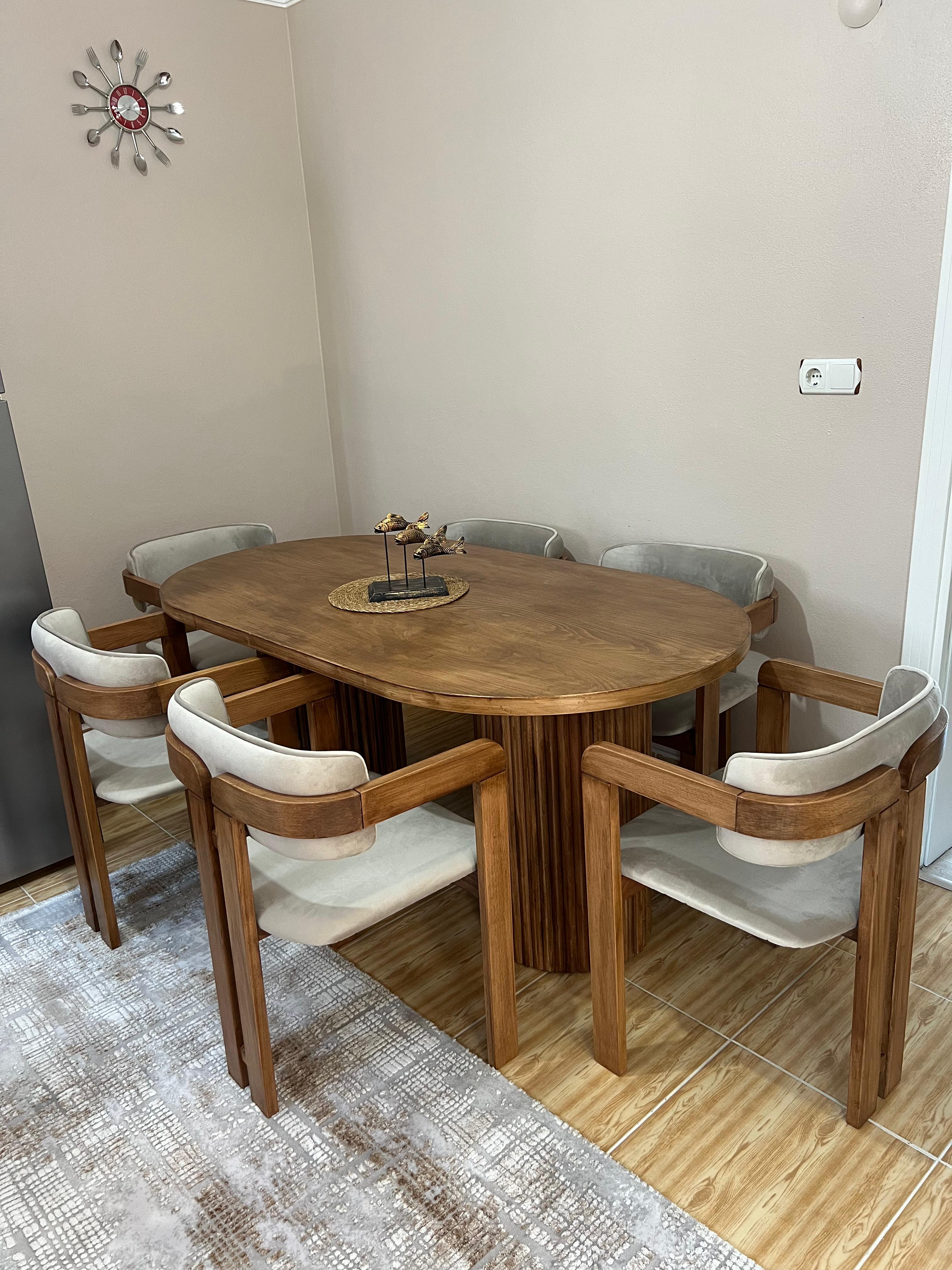 - Tasarım BY VARAN'a ait olan 6 kişilik yemek masası takımı renk özellikleri ile evinizi süslemek için hazır.