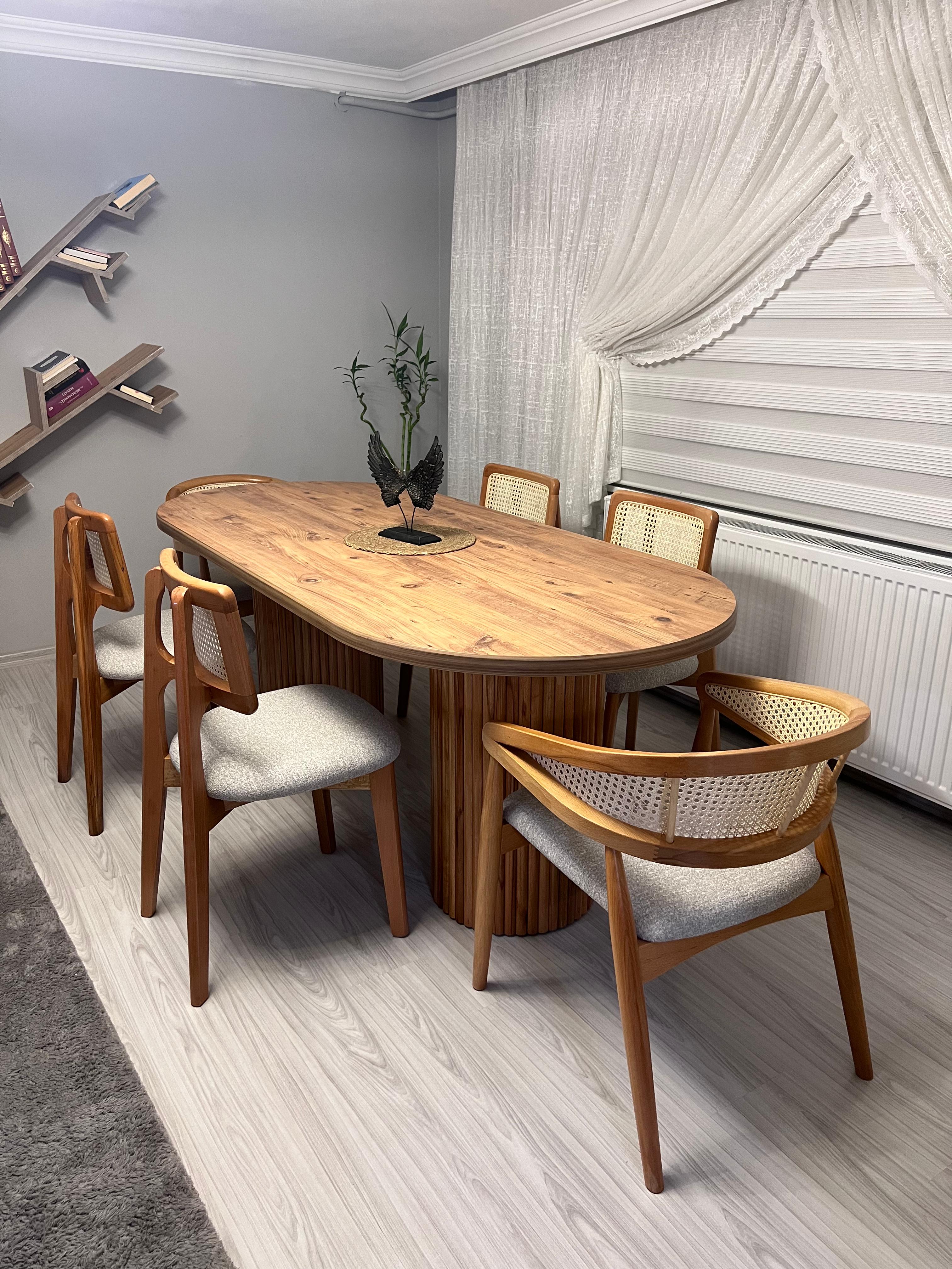 - Tasarım BY VARAN'a ait olan 6 kişilik yemek masası takımı renk özellikleri ile evinizi süslemek için hazır.