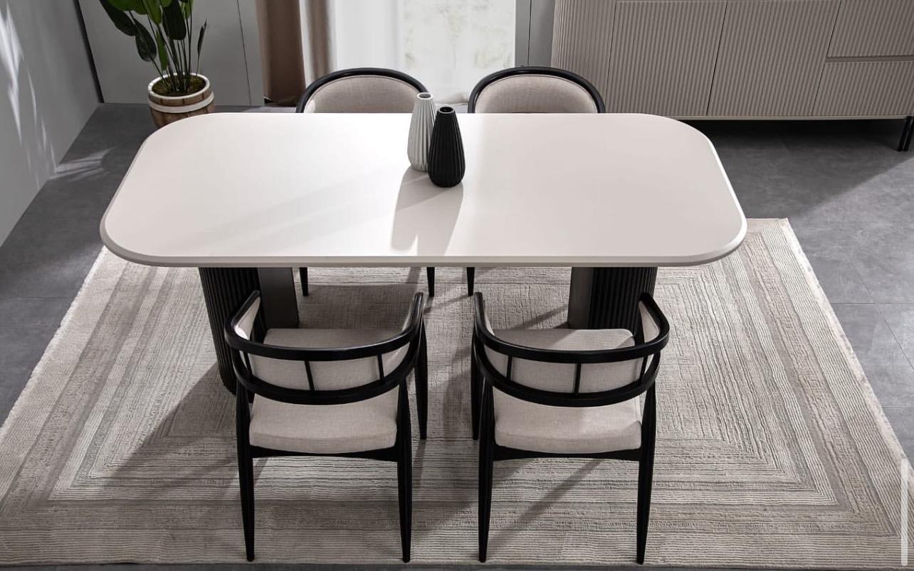 - Tasarım BY VARAN'a ait olan 4 kişilik yemek masası takımı renk özellikleri ile evinizi süslemek için hazır.