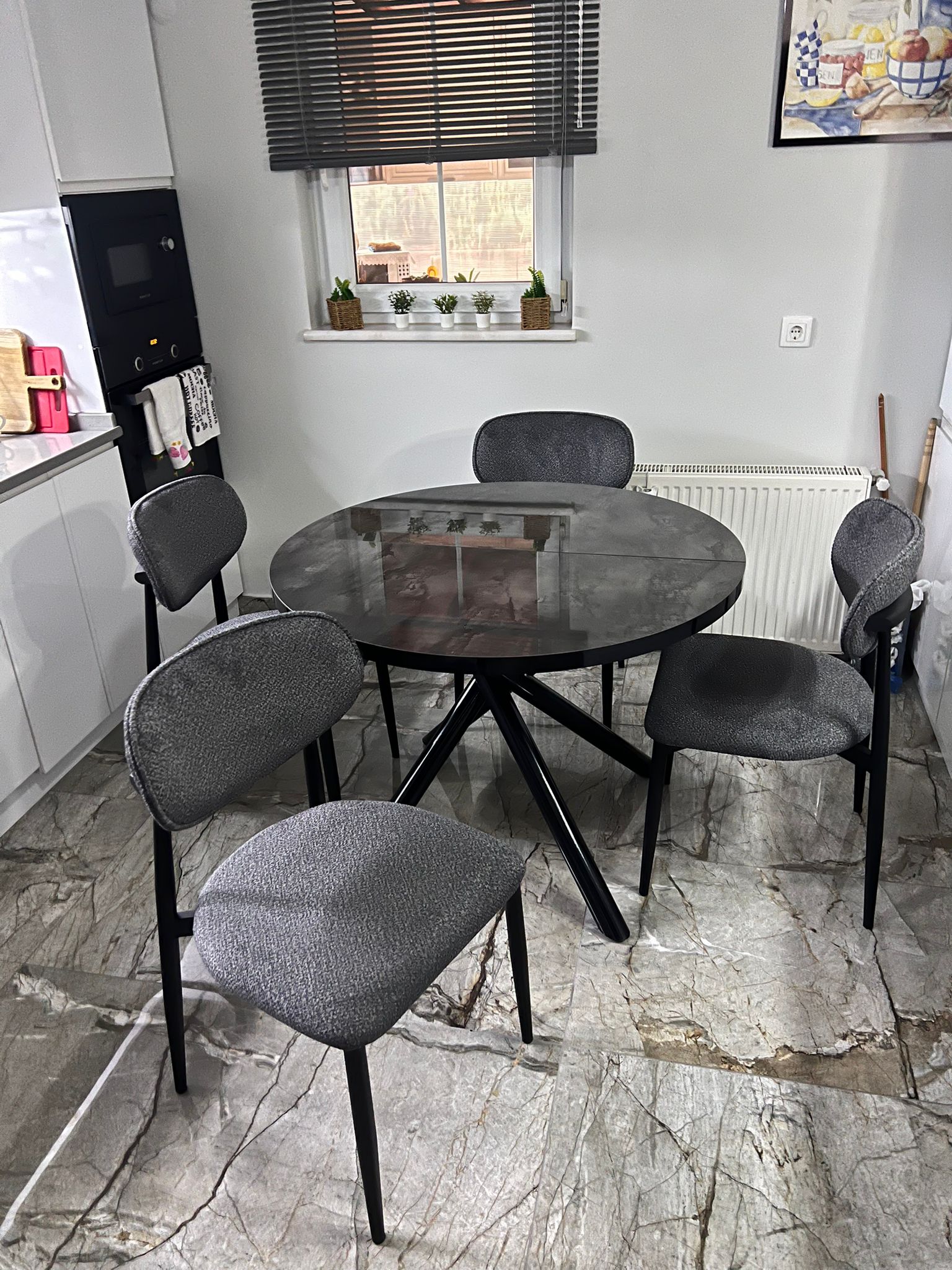 - Tasarım BY VARAN'a ait olan 4 kişilik yemek masası takımı renk özellikleri ile evinizi süslemek için hazır.