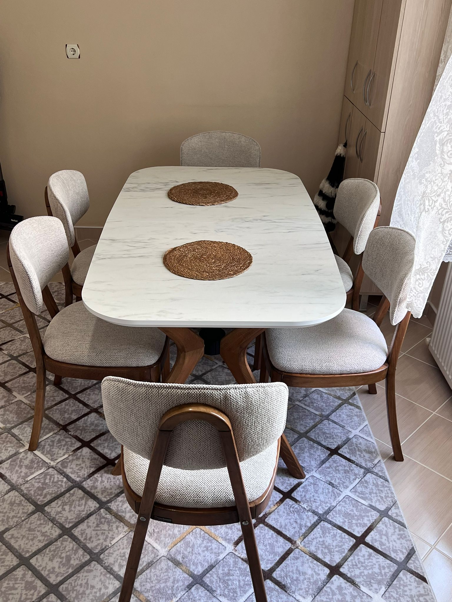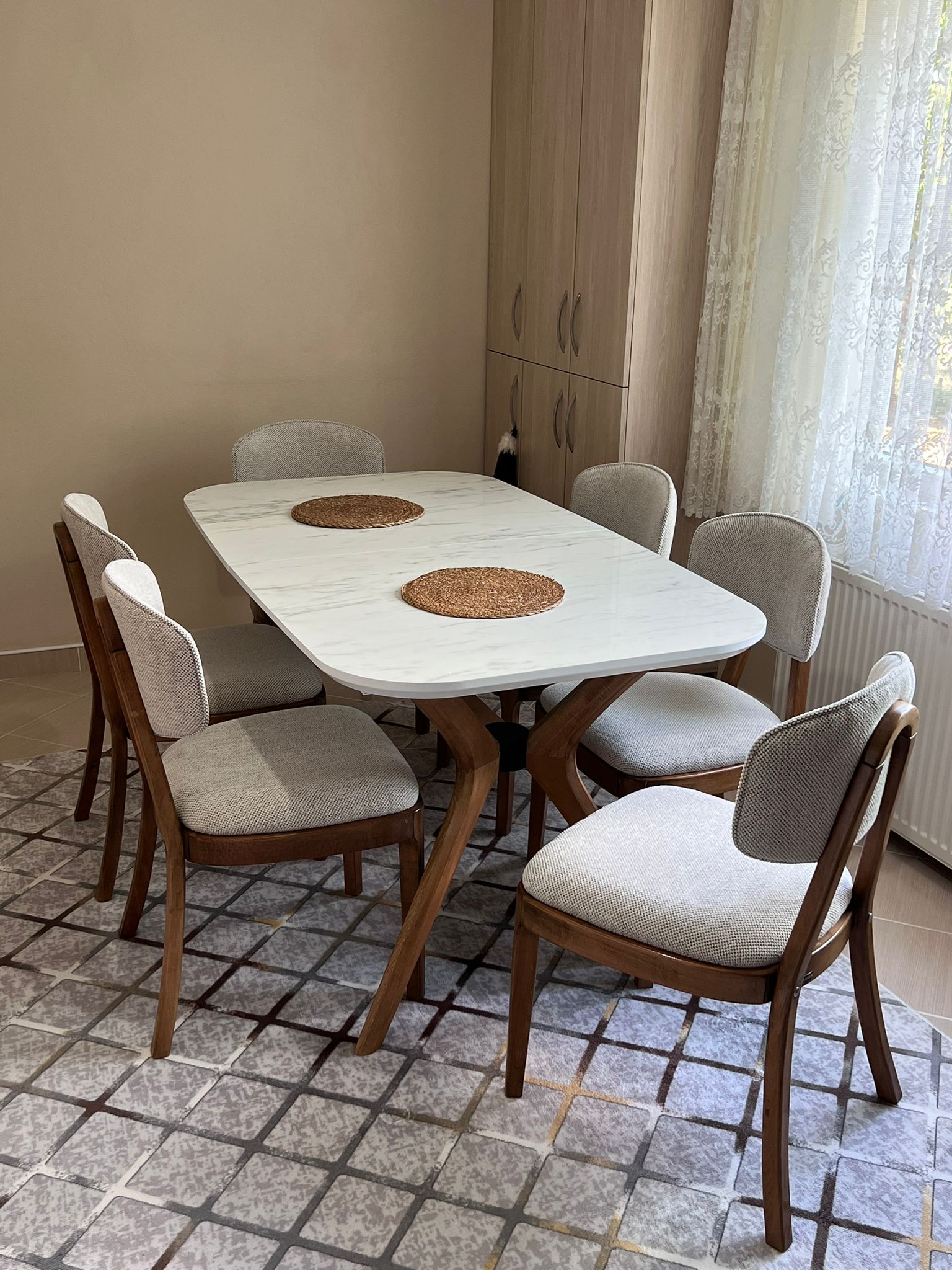 - Tasarım BY VARAN'a ait olan 6 kişilik yemek masası takımı renk özellikleri ile evinizi süslemek için hazır.