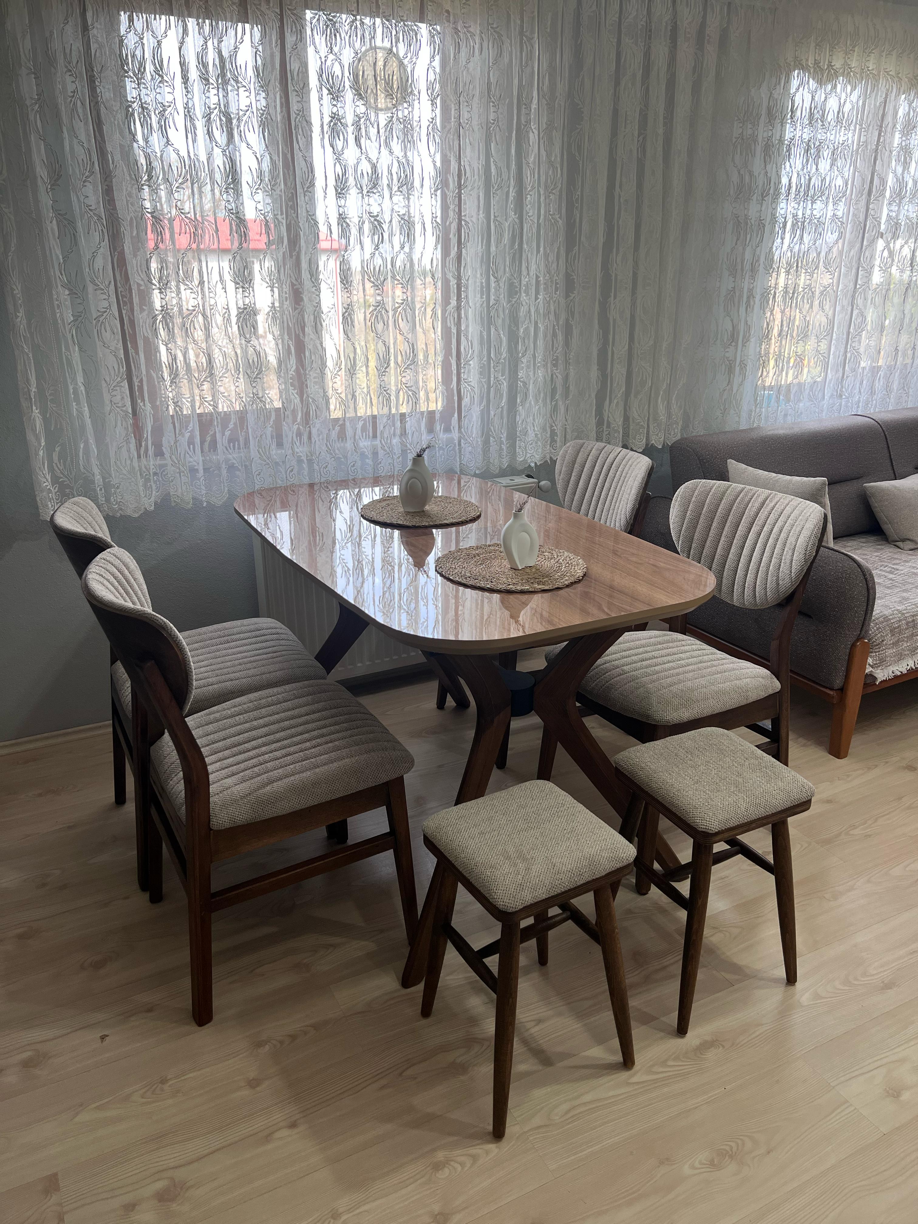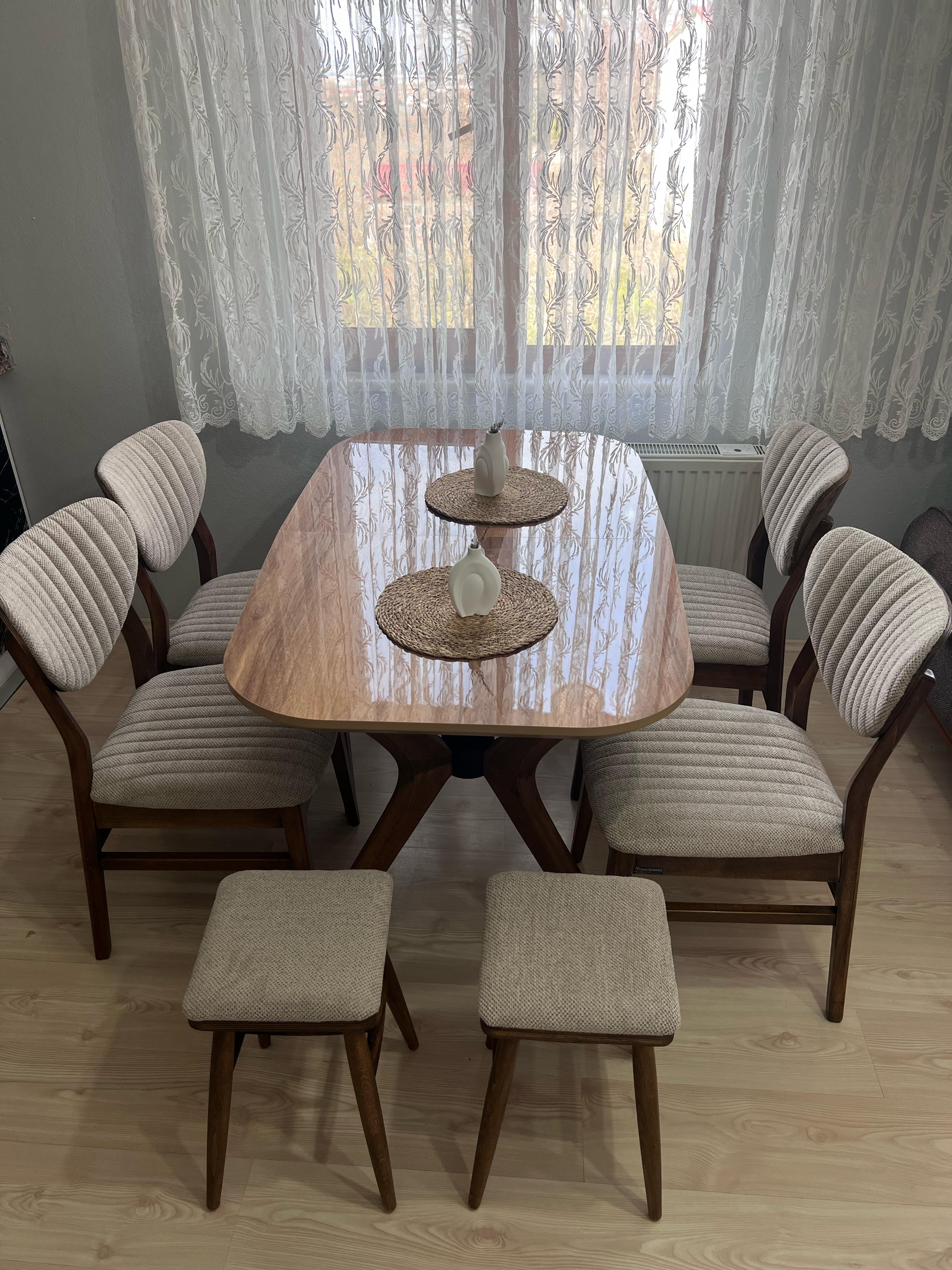 - Tasarım BY VARAN'a ait olan 6 kişilik yemek masası takımı renk özellikleri ile evinizi süslemek için hazır.
