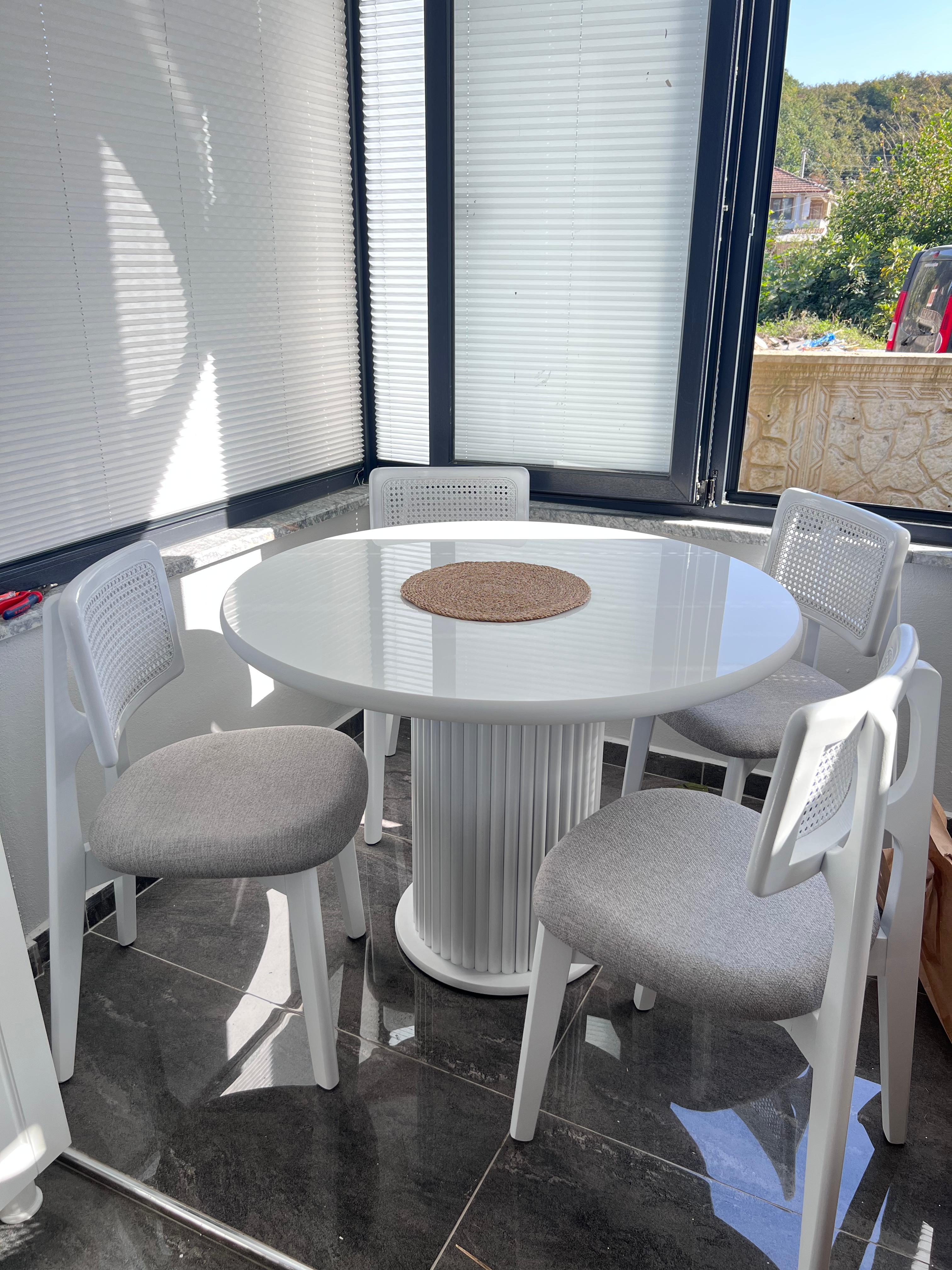 - Tasarım BY VARAN'a ait olan 4 kişilik yemek masası takımı renk özellikleri ile evinizi süslemek için hazır.